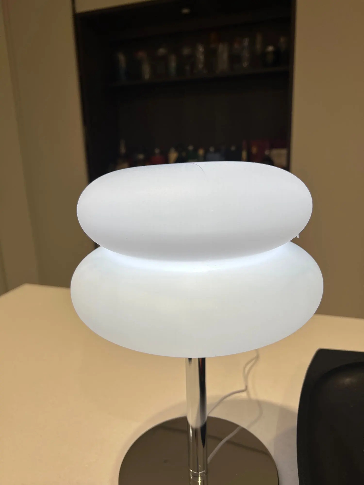 Crafted from a blend of durable plastic and metal, the lamp feels sturdy while maintaining a light, elegant presence.